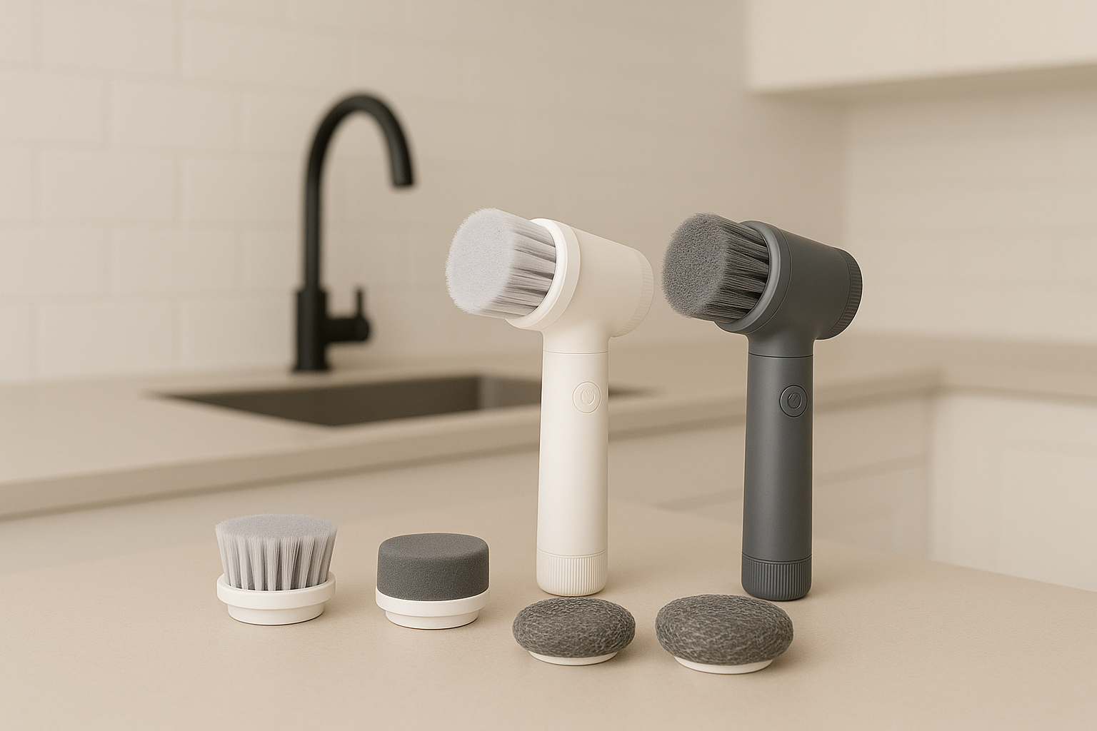 ScrubMate takes the hard work out of dishwashing, saving you time and effort. Instead of scrubbing for minutes, let the rotating brush heads tackle grease, food residue, and stains in seconds.